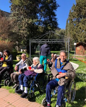 E' finalmente tornata la primavera e con essa la volgia di passare del tempo tutti insieme nel meraviglioso giardino della nostra struttura. I caregivers hanno preparato una merenda per i nostri ospiti e tutti insieme terapisti, oss, volontari e ospiti abbiamo trascorso un pomeriggio all'insegna del divertimento.