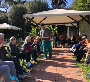 Abbiamo lasciato scegliere ad ogni ospite una canzone ed il tutto è stato accompagnato da una merenda. Stare in gruppo aiuta la socializzazione , riduce l'isolamento e mette in moto mente ed emozioni, magari accantonate da tempo, ridando significato alla vita presente.